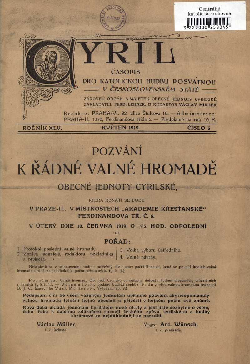 Pozvání k řádné valné hromadě Obecné Jednoty Cyrilské Ročník: 1919; strana: 65, Přepis ke stažení ve formátu MS Word [0 kB]