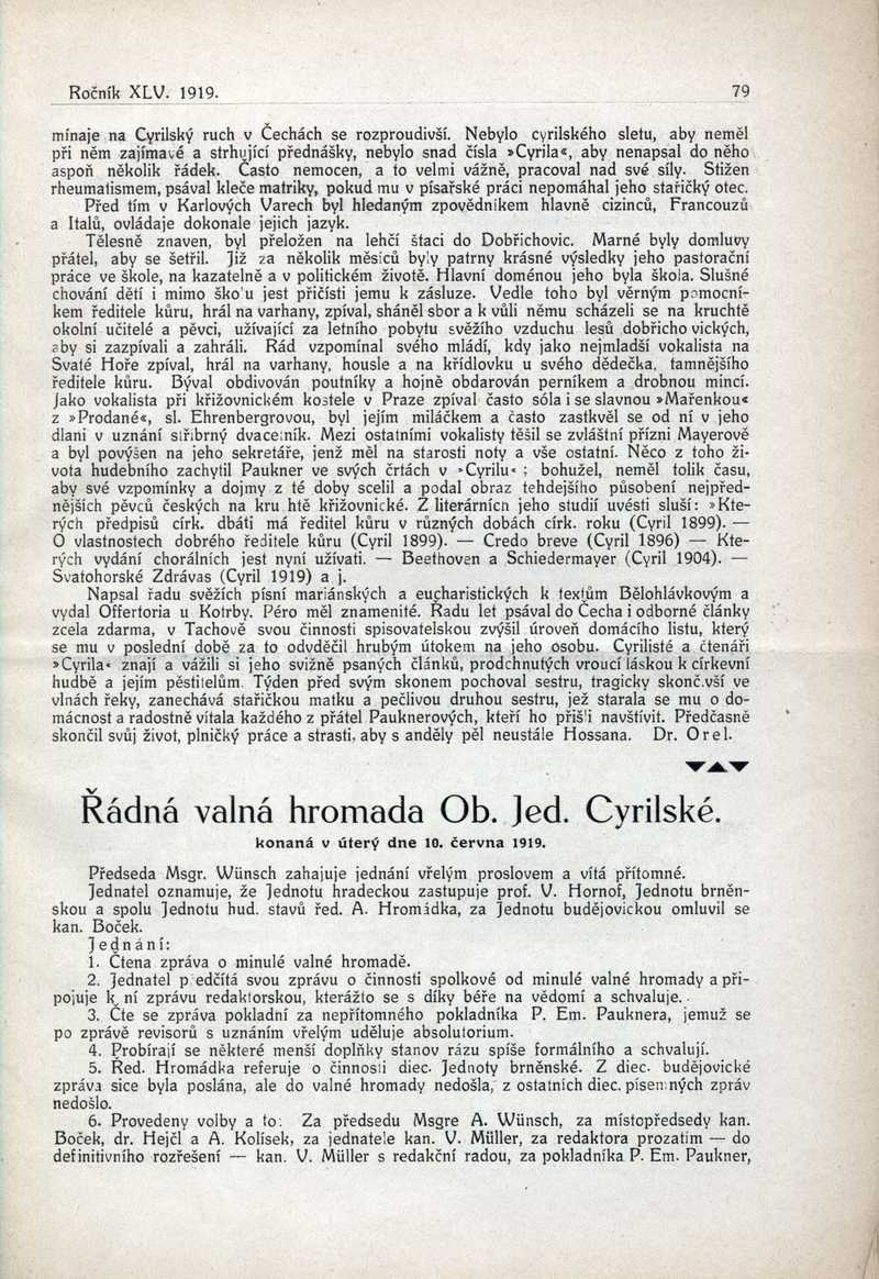 Řádná valná hromada Ob. Jed. Cyrilské Ročník: 1919; strana: 79, Přepis ke stažení ve formátu MS Word [0 kB]