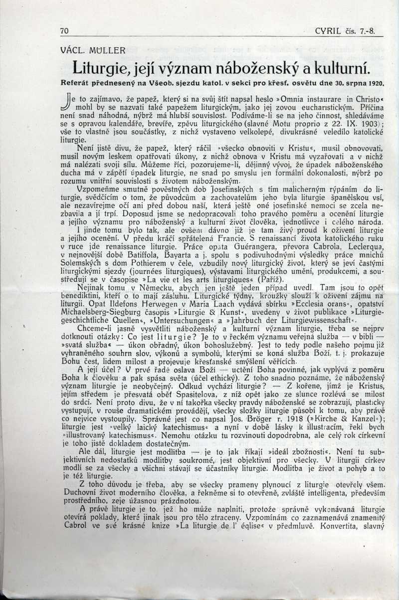 Liturgie, její význam náboženský a kulturní Ročník: 1920; strana: 70, Přepis ke stažení ve formátu MS Word [0 kB]