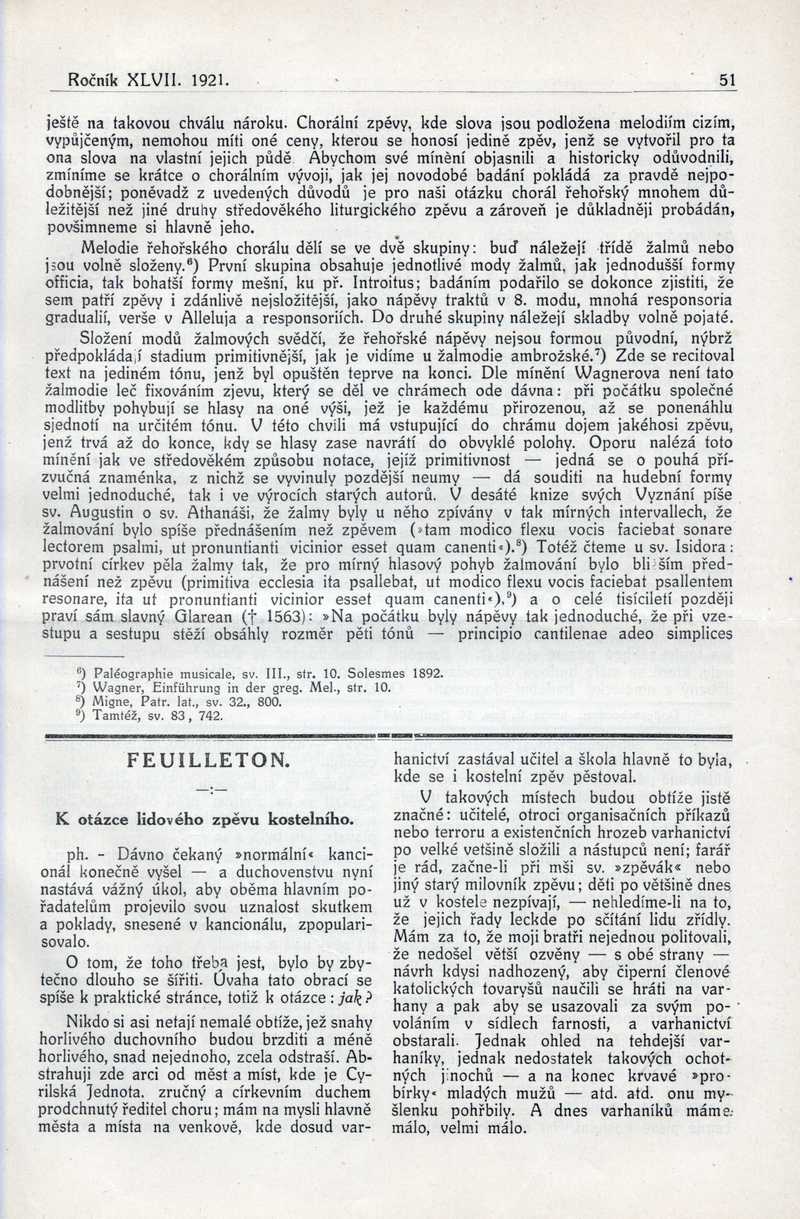 Feuilleton (K otázce lidového zpěvu kostelního) Ročník: 1921; strana: 51, Přepis ke stažení ve formátu MS Word [0 kB]