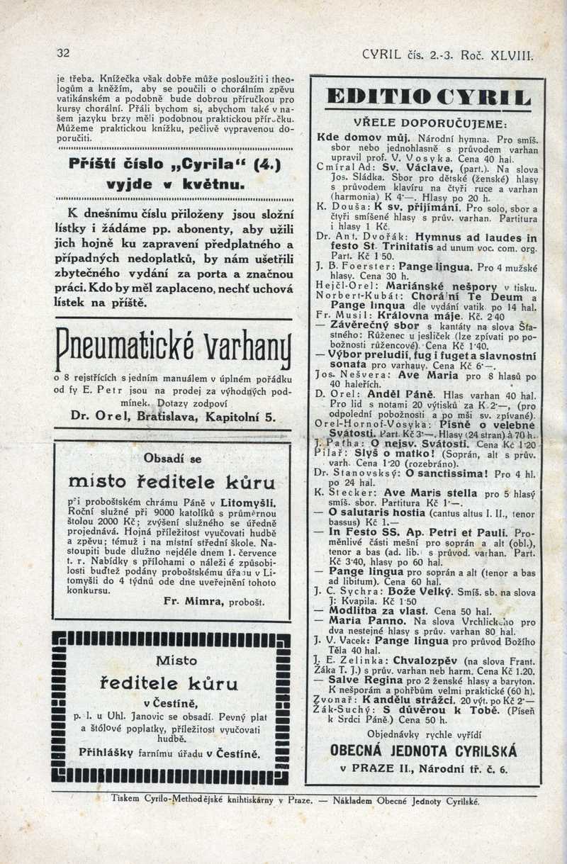 Editio Cyril. Vřele doporučujeme Ročník: 1922; strana: 32, Přepis ke stažení ve formátu MS Word [0 kB]