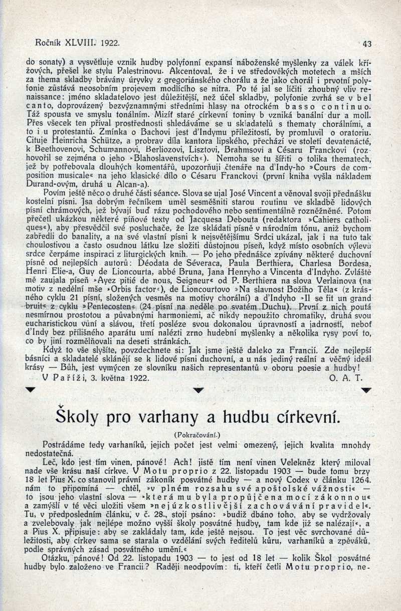 Školy pro varhany a hudbu církevní Ročník: 1922; strana: 43, Přepis ke stažení ve formátu MS Word [0 kB]
