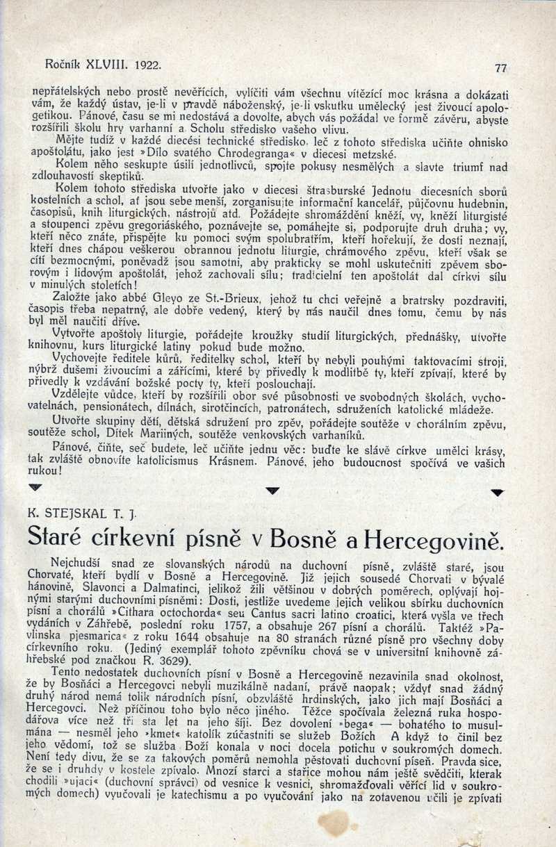 Staré církevní písně v Bosně a Hercegovině Ročník: 1922; strana: 77, Přepis ke stažení ve formátu MS Word [0 kB]