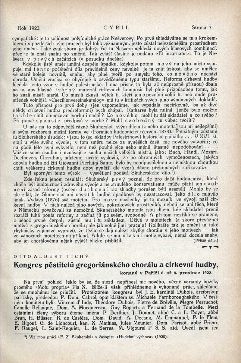 Kongres pěstitelů gregoriánského chorálu a církevní hudby Ročník: 1923; strana: 7, Přepis ke stažení ve formátu MS Word [0 kB]