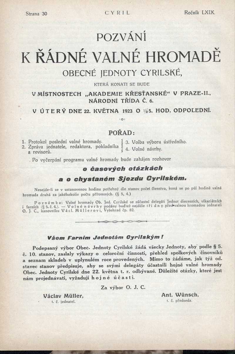 Všem Farním Jednotám Cyrilským! Ročník: 1923; strana: 30, Přepis ke stažení ve formátu MS Word [0 kB]