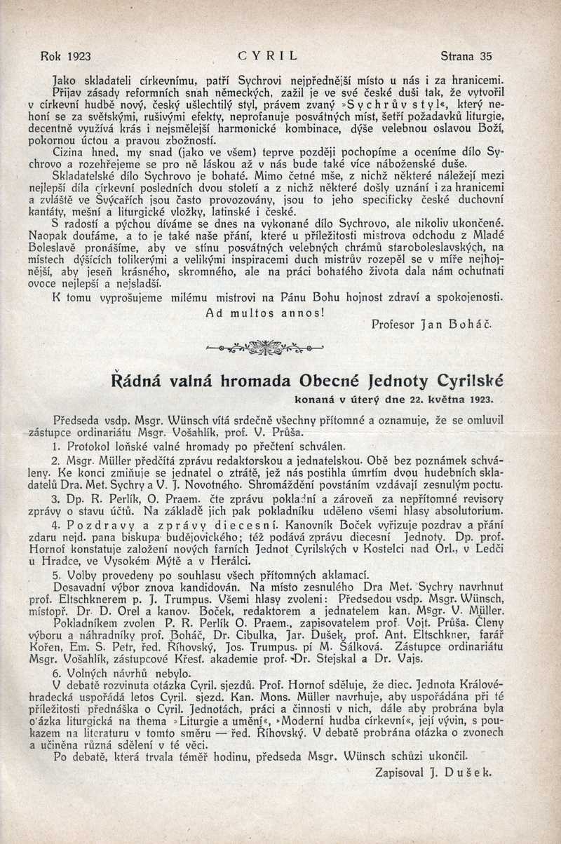 Řádná valná hromada Obecné Jednoty Cyrilské Ročník: 1923; strana: 35, Přepis ke stažení ve formátu MS Word [0 kB]