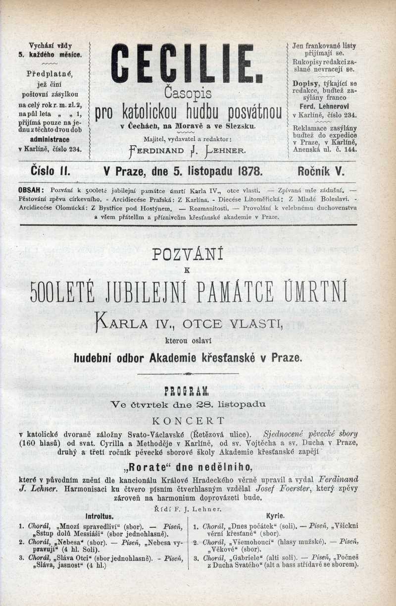 Pozvání k 500leté jubilejní památce úmrtní Karla IV., Otce vlasti Ročník: 1878; strana: 81, Přepis ke stažení ve formátu MS Word [0 kB]