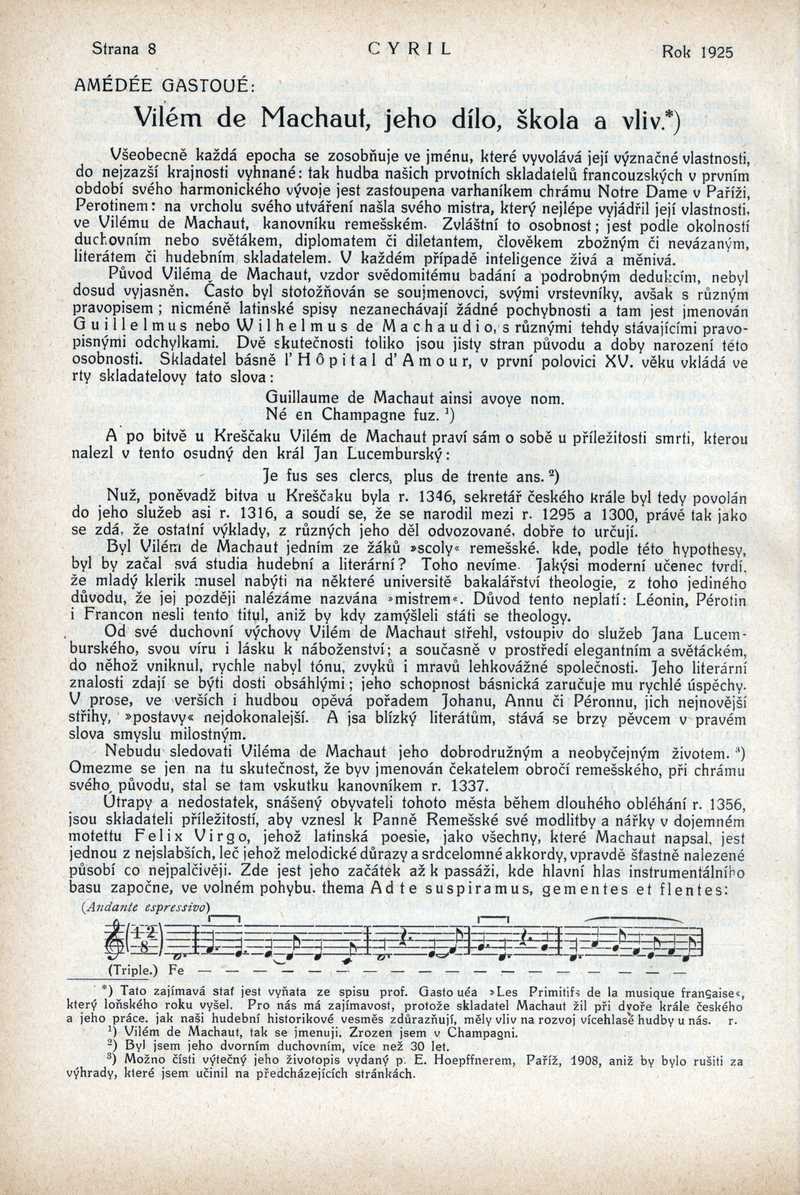Vilém de Machaut, jeho dílo, škola a vliv Ročník: 1925; strana: 8, Přepis ke stažení ve formátu MS Word [0 kB]
