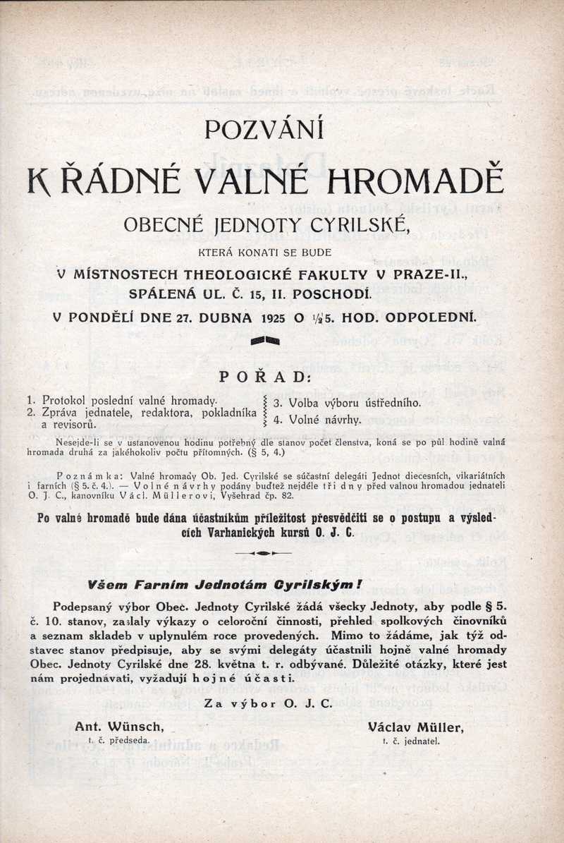 Pozvání k řádné valné hromadě Obecné Jednoty Cyrilské Ročník: 1925; strana: 27, Přepis ke stažení ve formátu MS Word [0 kB]