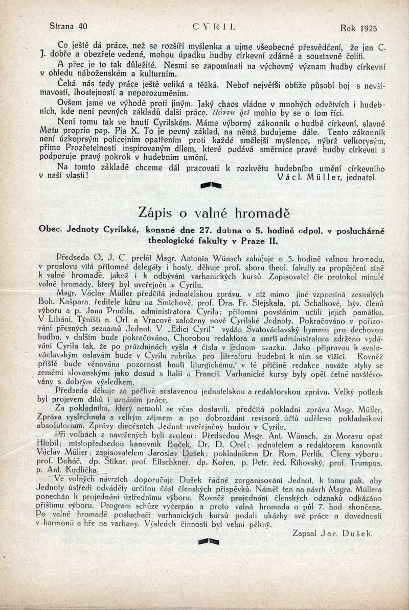 Zápis o valné hromadě Obec. Jednoty Cyrilské Ročník: 1925; strana: 40, Přepis ke stažení ve formátu MS Word [0 kB]