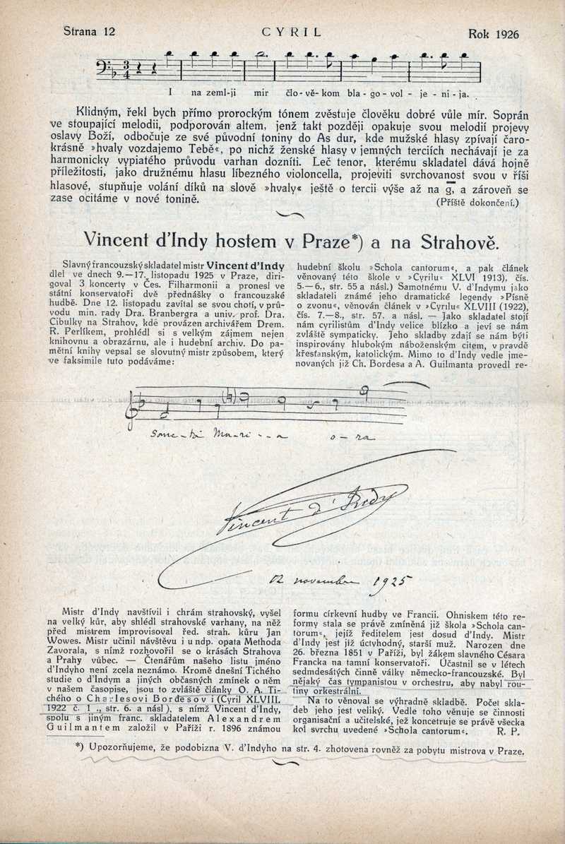 Vincent d'Indy hostem v Praze a na Strahově Ročník: 1926; strana: 12, Přepis ke stažení ve formátu MS Word [0 kB]