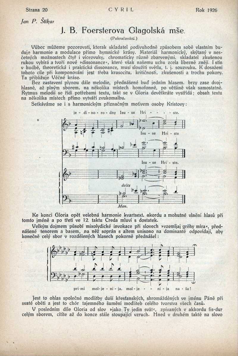 J. B. Foersterova Glagolská mše Ročník: 1926; strana: 20, Přepis ke stažení ve formátu MS Word [0 kB]