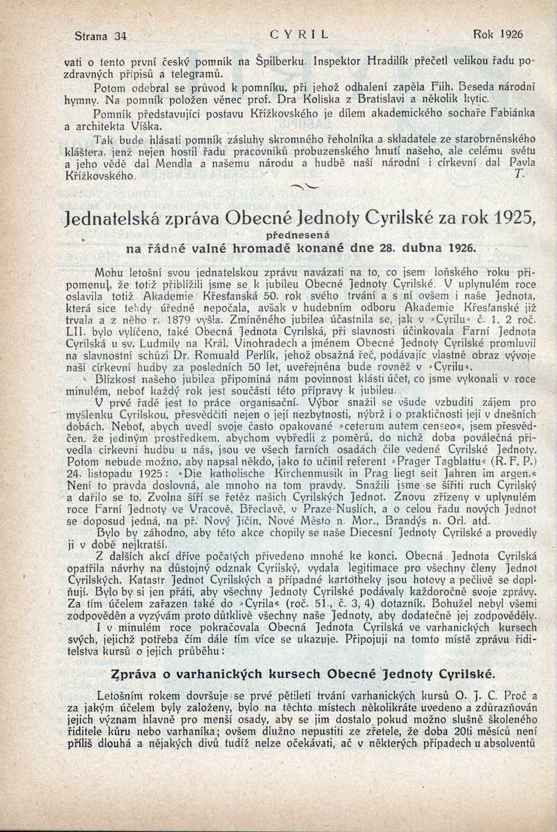 Jednatelská zpráva Obecné Jednoty Cyrilské za rok 1925 Ročník: 1926; strana: 34, Přepis ke stažení ve formátu MS Word [0 kB]