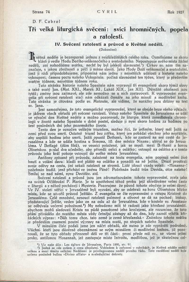 Tři velká liturgická svěcení: svící hromničných, popela a ratolestí Ročník: 1927; strana: 74, Přepis ke stažení ve formátu MS Word [0 kB]