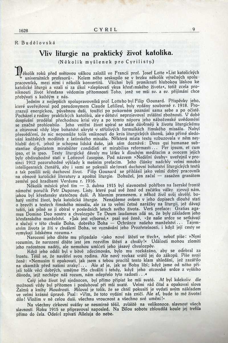 Vliv liturgie na praktický život katolíka Ročník: 1928; strana: 9, Přepis ke stažení ve formátu MS Word [0 kB]