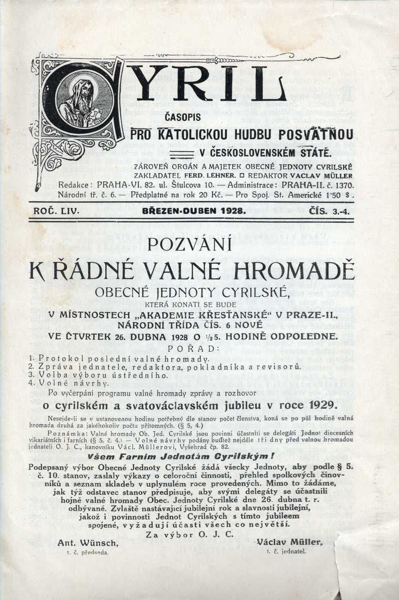 Pozvání k řádné valné hromadě Obecné Jednoty Cyrilské Ročník: 1928; strana: 17, Přepis ke stažení ve formátu MS Word [0 kB]
