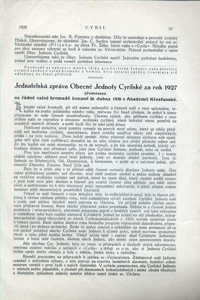 Jednatelská zpráva Obecné Jednoty Cyrilské za rok 1927 Ročník: 1928; strana: 37, Přepis ke stažení ve formátu MS Word [0 kB]