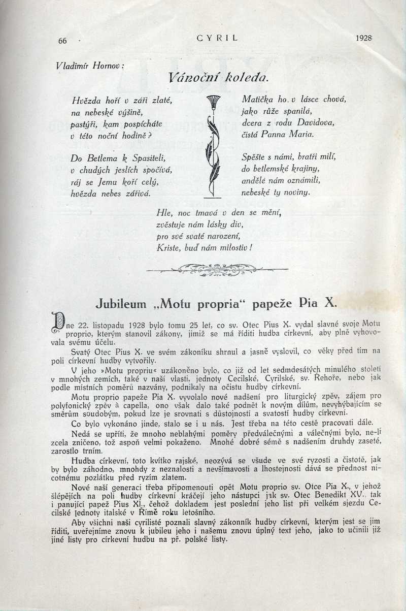 Jubileum "Motu propria" papeže Pia X. Ročník: 1928; strana: 66, Přepis ke stažení ve formátu MS Word [0 kB]
