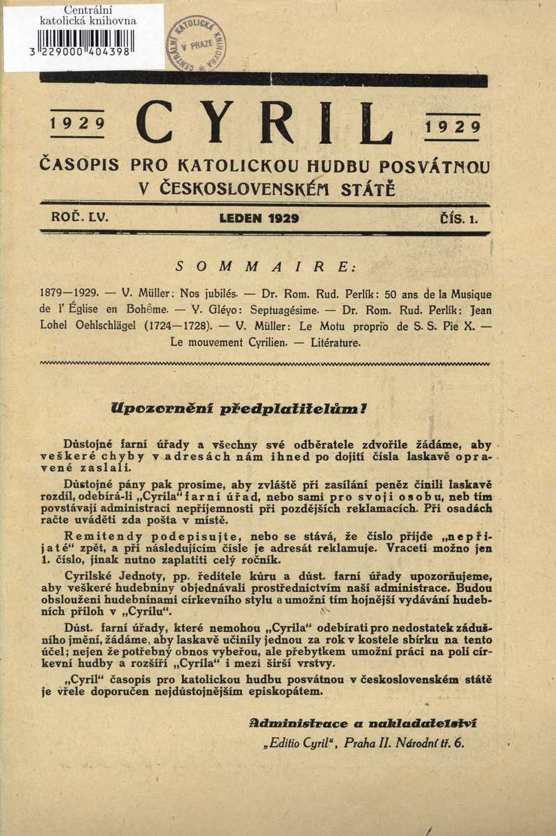 Upozornění předplatitelům! Ročník: 1929; strana: 0, příloha: 1 Přepis ke stažení ve formátu MS Word [0 kB]