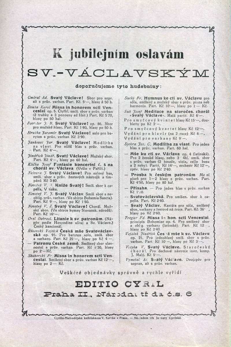 K jubilejním oslavám Sv.-Václavským Ročník: 1929; strana: 24, příloha: 2 Přepis ke stažení ve formátu MS Word [0 kB]