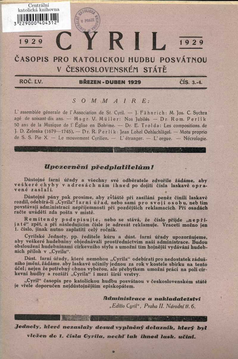 Upozornění předplatitelům! Ročník: 1929; strana: 24, příloha: 3 Přepis ke stažení ve formátu MS Word [0 kB]