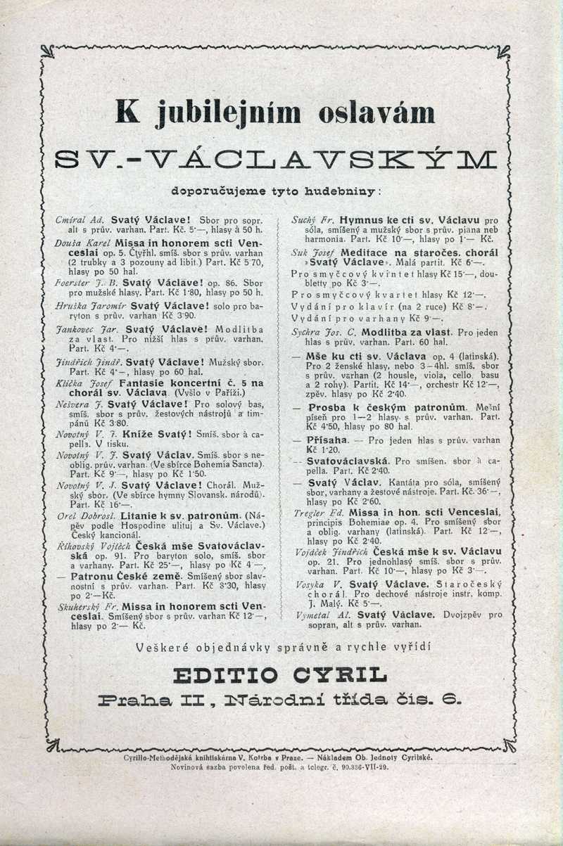 K jubilejním oslavám Sv.-Václavským Ročník: 1929; strana: 40, příloha: 2 Přepis ke stažení ve formátu MS Word [0 kB]