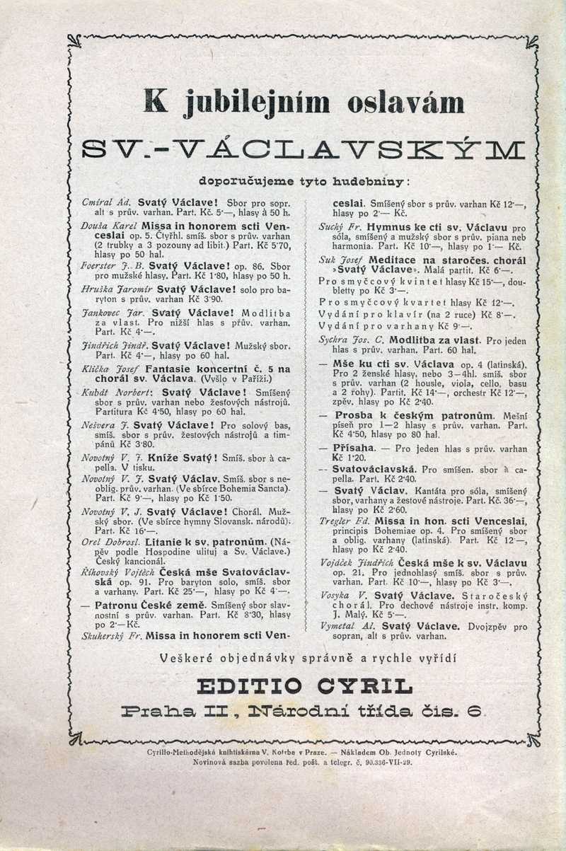 K jubilejním oslavám Sv.-Václavským Ročník: 1929; strana: 52, příloha: 2 Přepis ke stažení ve formátu MS Word [0 kB]