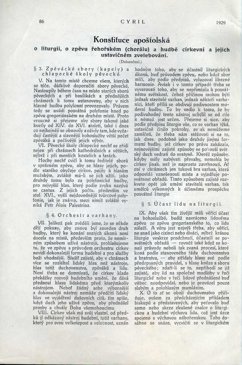 Konstituce apoštolská o liturgii, o zpěvu řehoř. a hudbě církevní ... Ročník: 1929; strana: 86, Přepis ke stažení ve formátu MS Word [0 kB]
