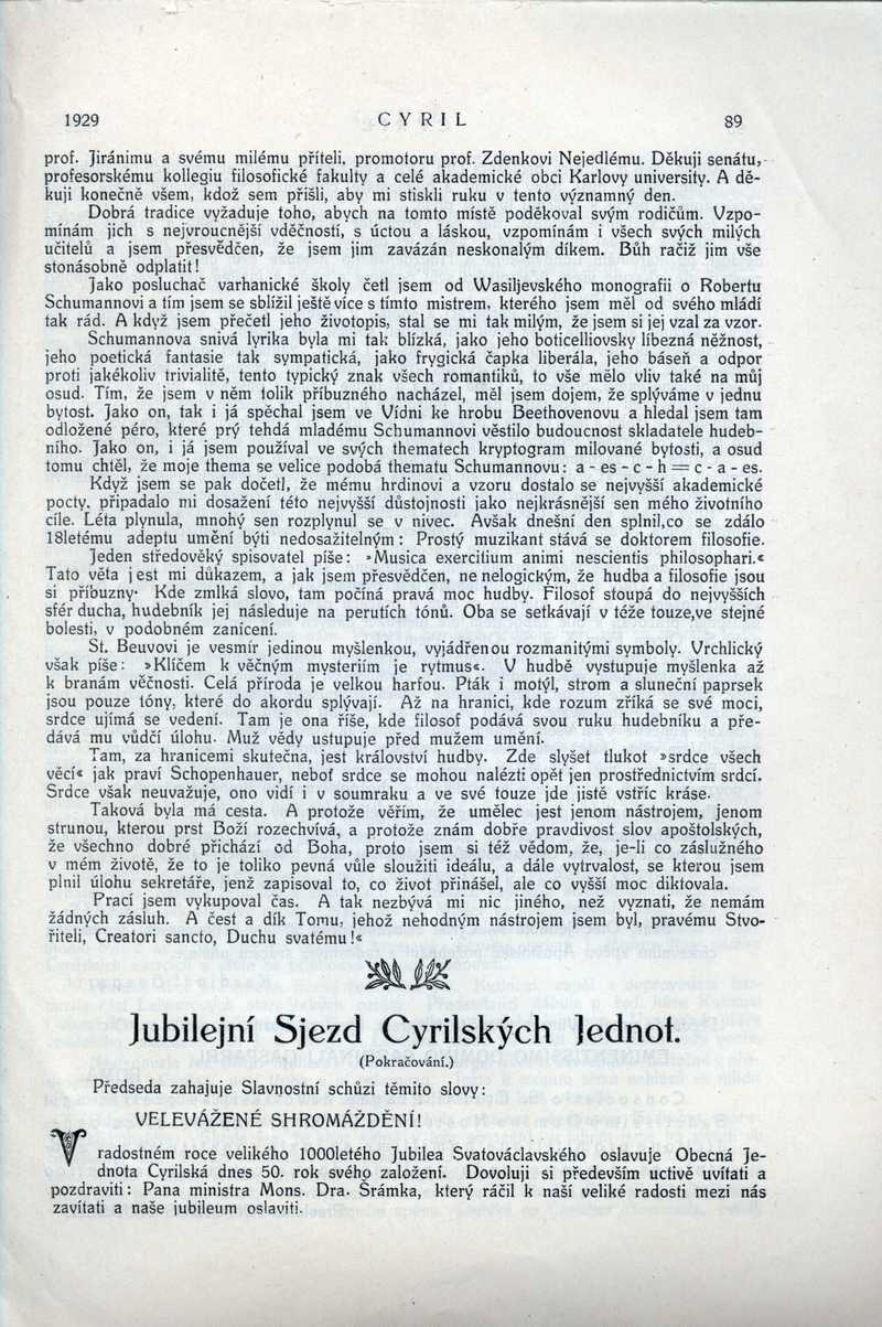 Jubilejní Sjezd Cyrilských Jednot Ročník: 1929; strana: 89, Přepis ke stažení ve formátu MS Word [0 kB]