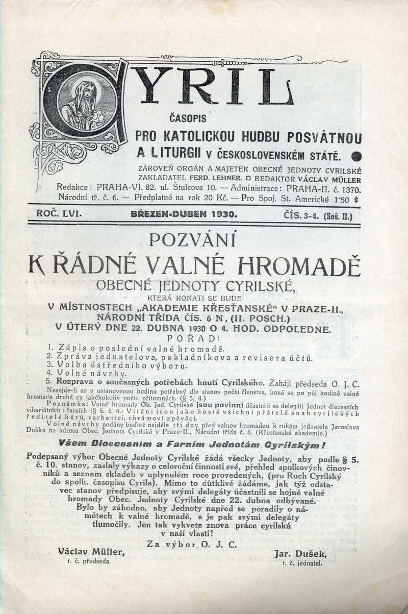 Pozvání k řádné valné hromadě Obecné Jednoty Cyrilské Ročník: 1930; strana: 17, Přepis ke stažení ve formátu MS Word [0 kB]
