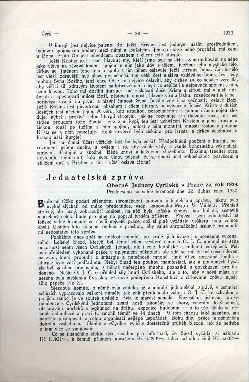 Jednatelská zpráva Obecné Jednoty Cyrilské Ročník: 1930; strana: 38, Přepis ke stažení ve formátu MS Word [0 kB]