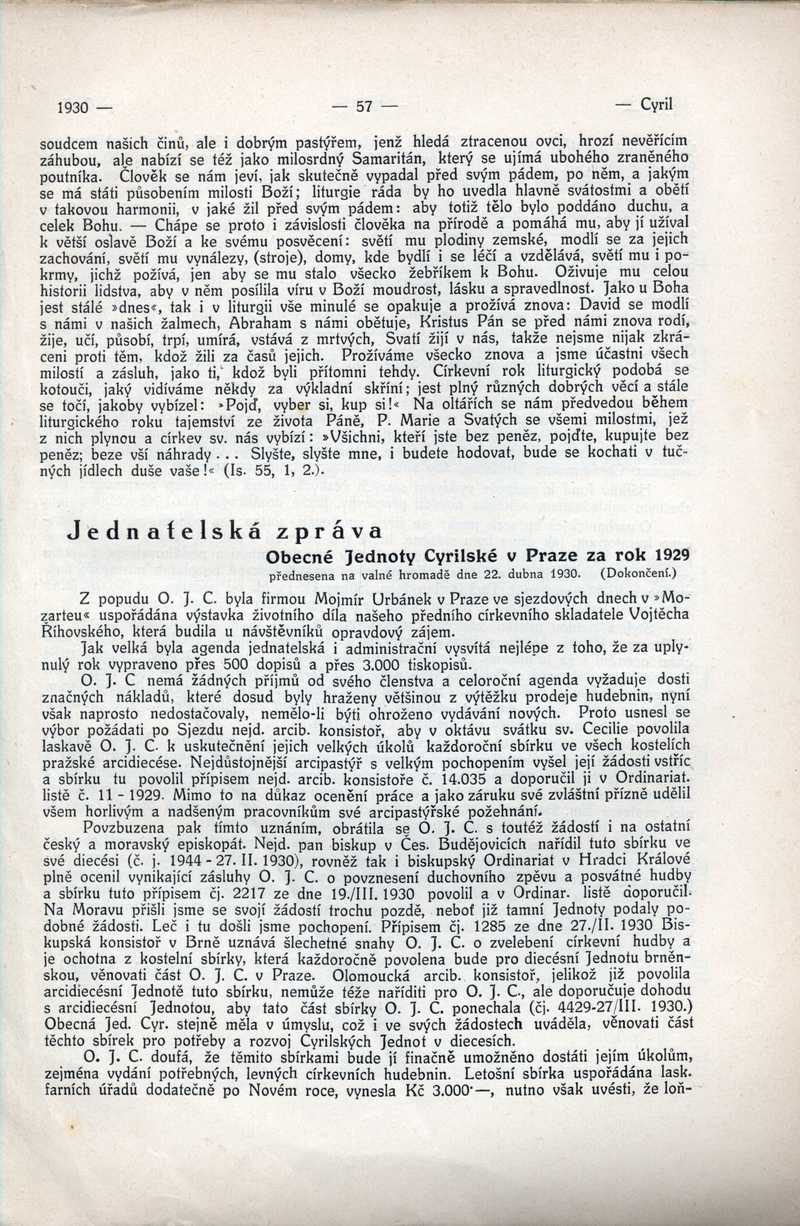 Jednatelská zpráva Obecné Jednoty Cyrilské za rok 1929 Ročník: 1930; strana: 57, Přepis ke stažení ve formátu MS Word [0 kB]