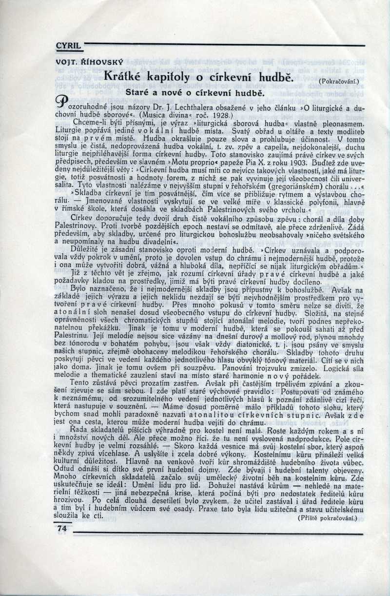 Krátké kapitoly o církevní hudbě Ročník: 1931; strana: 74, Přepis ke stažení ve formátu MS Word [0 kB]