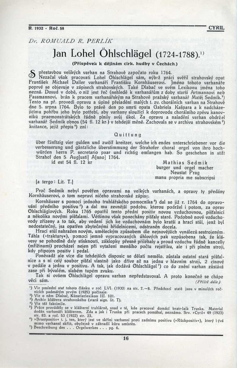 Jan Lohel Öhlschlägel (1724 - 1788) Ročník: 1932; strana: 16, Přepis ke stažení ve formátu MS Word [0 kB]