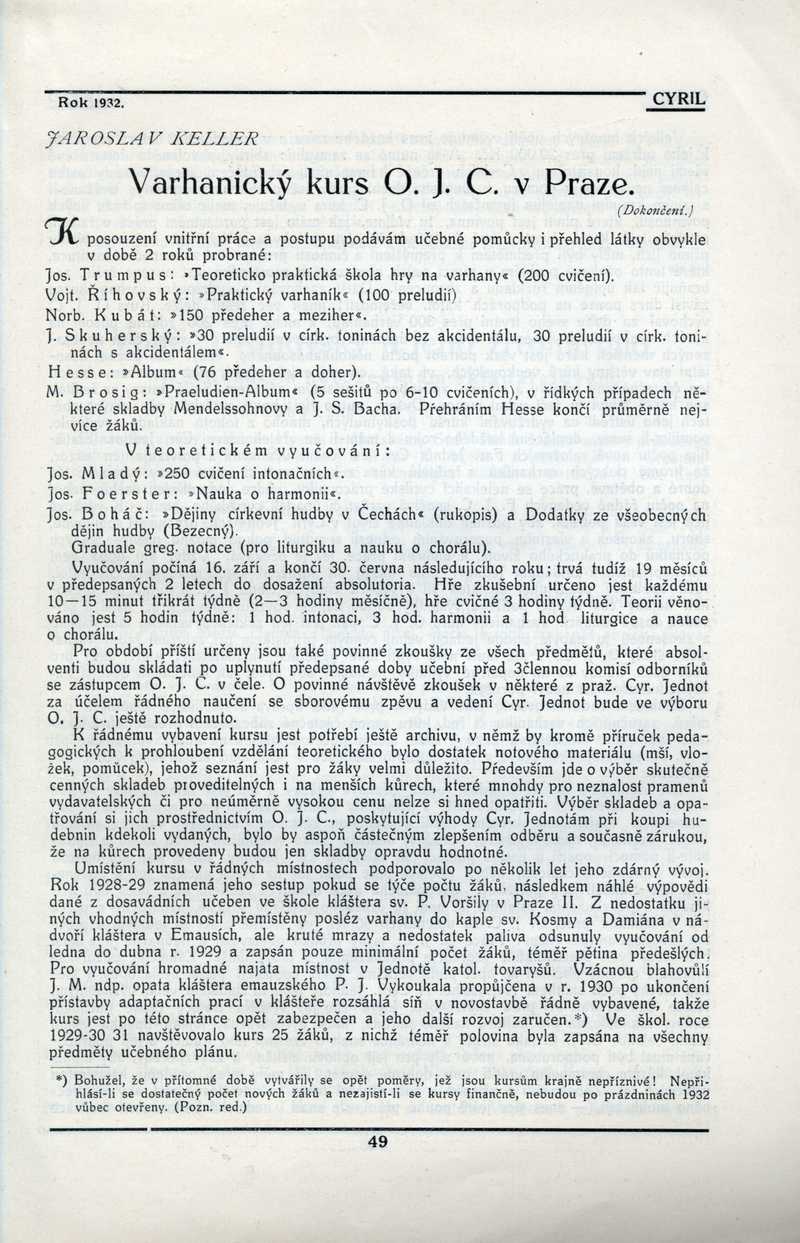 Varhanický kurs O. J. C. v Praze Ročník: 1932; strana: 49, Přepis ke stažení ve formátu MS Word [0 kB]