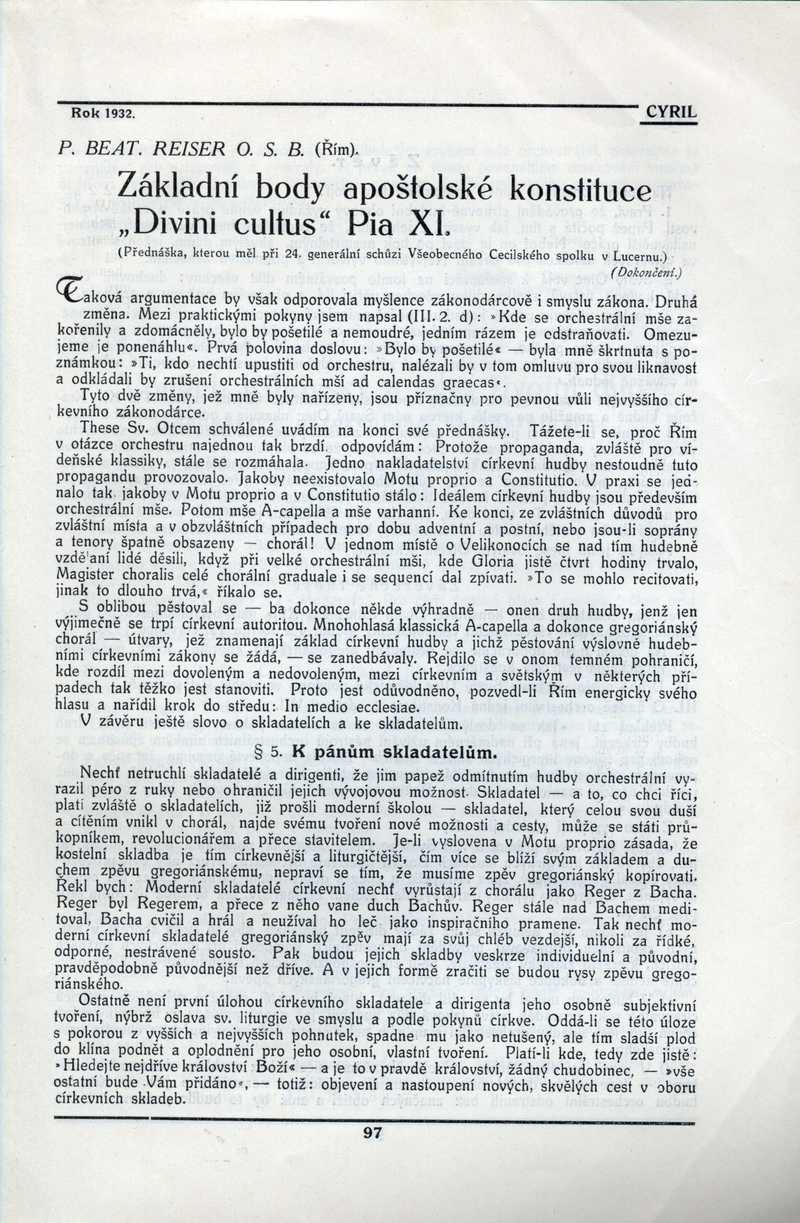 Základní body apoštolské konstituce "Divini cultus" Pia XI. Ročník: 1932; strana: 97, Přepis ke stažení ve formátu MS Word [0 kB]