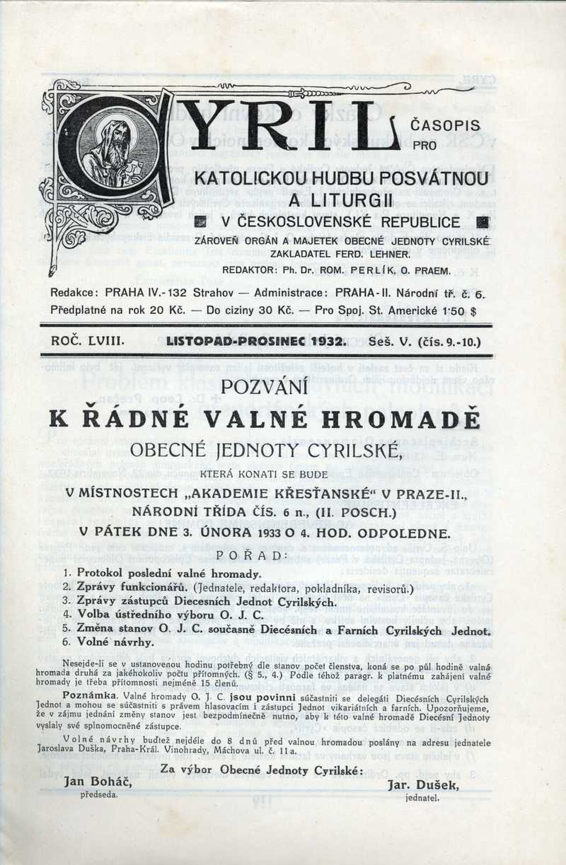 Pozvání k řádné valné hromadě Obecné Jednoty Cyrilské Ročník: 1932; strana: 109, Přepis ke stažení ve formátu MS Word [0 kB]