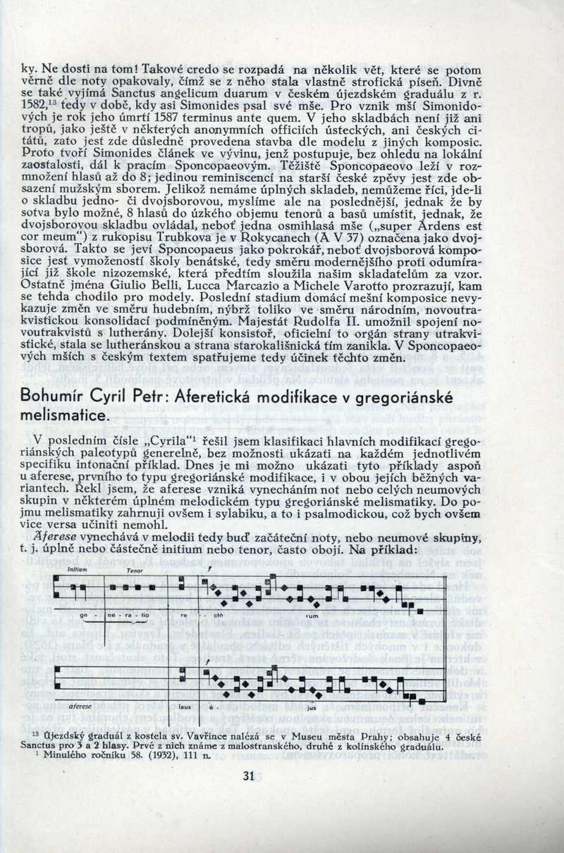Aferetická modifikace v gregoriánské melismatice Ročník: 1933; strana: 31, Přepis ke stažení ve formátu MS Word [0 kB]