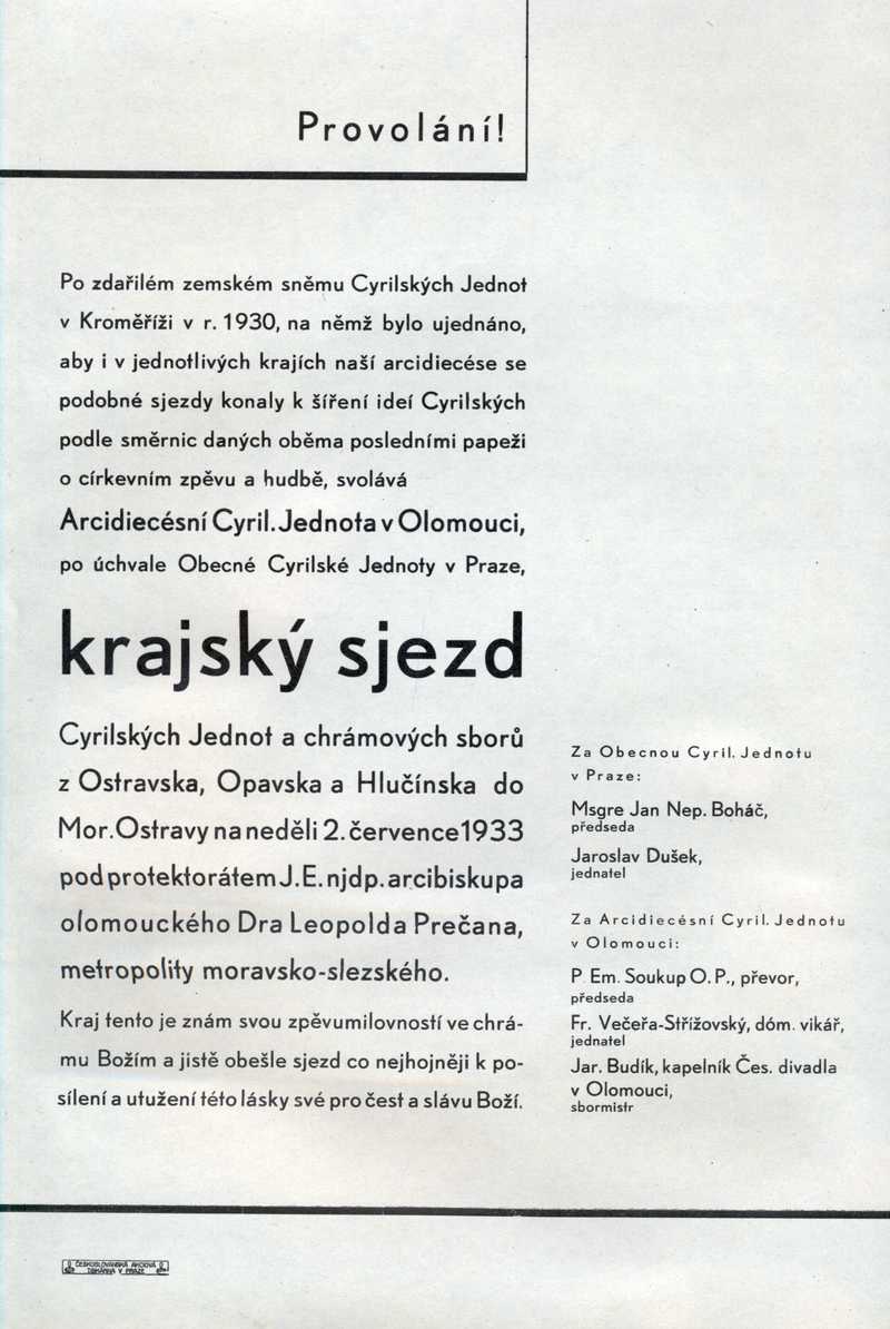Provolání (Krajský Sjezd) Ročník: 1933; strana: 48, příloha: 3 Přepis ke stažení ve formátu MS Word [0 kB]
