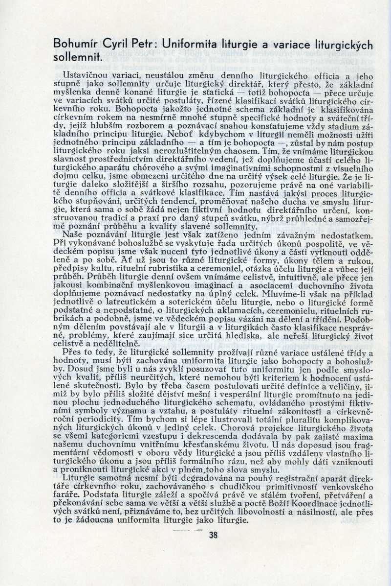Uniformita liturgie a variace liturgických sollemnit Ročník: 1934; strana: 38, Přepis ke stažení ve formátu MS Word [0 kB]