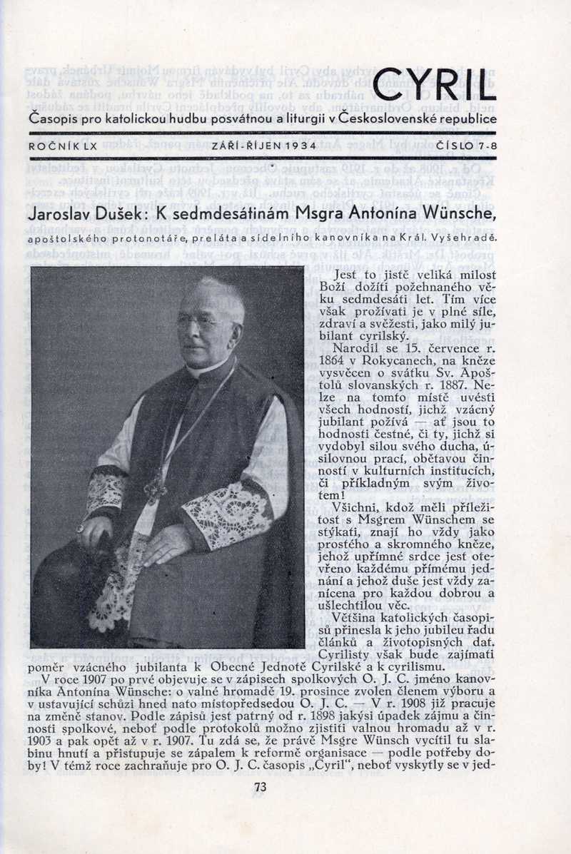 K sedmdesátinám Msgra Antonína Wünsche Ročník: 1934; strana: 73, Přepis ke stažení ve formátu MS Word [0 kB]