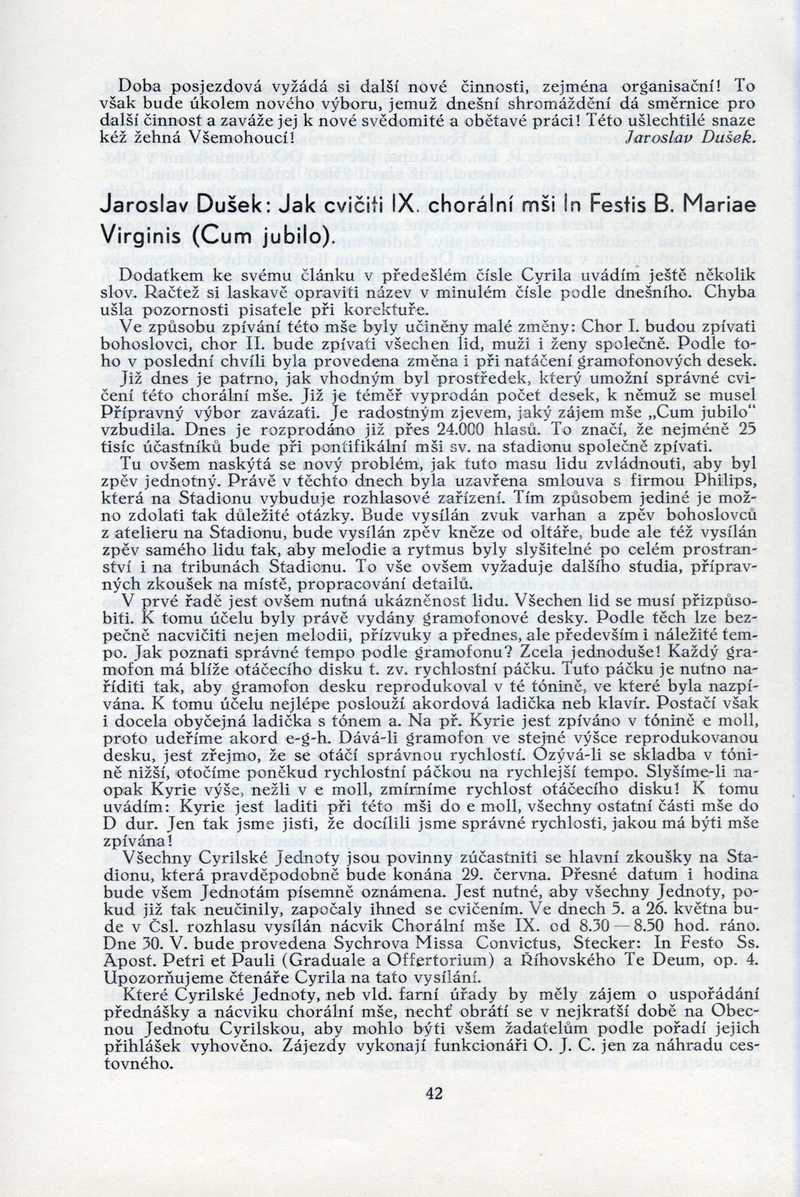 Jak cvičiti IX. chorální mši In Festis B. Mariae Virginis (Cum jubilo) Ročník: 1935; strana: 42, Přepis ke stažení ve formátu MS Word [0 kB]