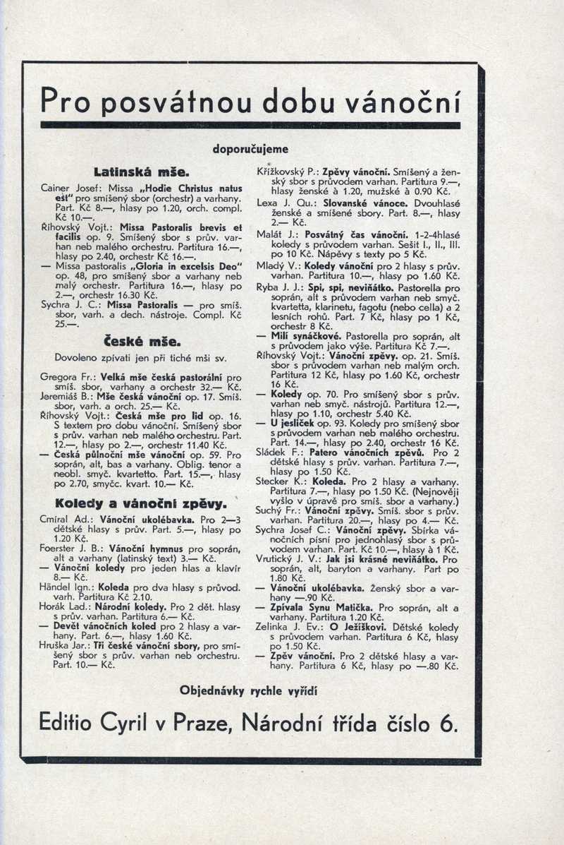 Pro posvátnou dobu vánoční doporučujeme Ročník: 1935; strana: 96, příloha: 1 Přepis ke stažení ve formátu MS Word [0 kB]