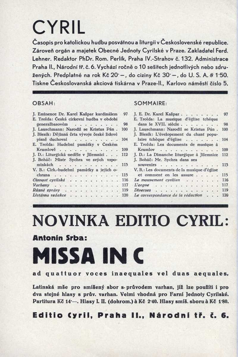 Novinka Editio Cyril Ročník: 1935; strana: 96, příloha: 4 Přepis ke stažení ve formátu MS Word [0 kB]