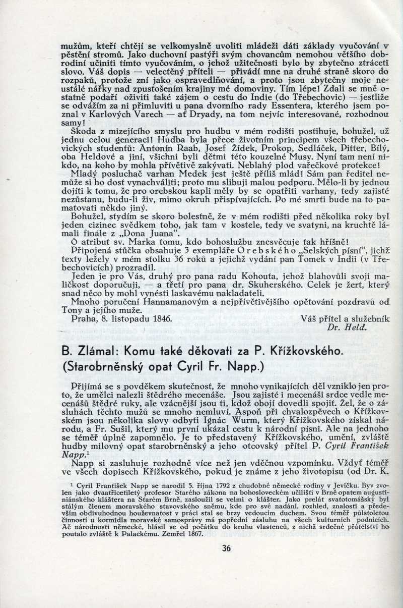 Komu také děkovati za P. Křížkovského (Starobrněnský opat Cyril Fr. Napp.) Ročník: 1936; strana: 36, Přepis ke stažení ve formátu MS Word [0 kB]