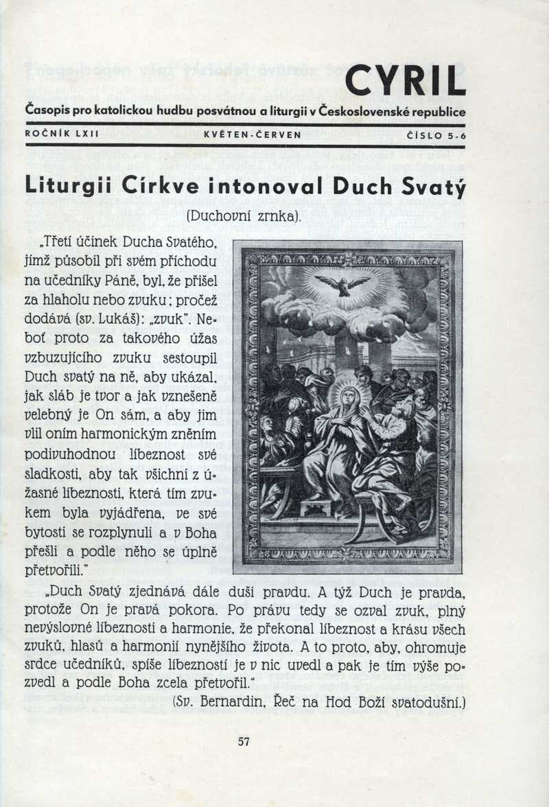 Liturgii Církve intonoval Duch Svatý Ročník: 1936; strana: 57, Přepis ke stažení ve formátu MS Word [0 kB]