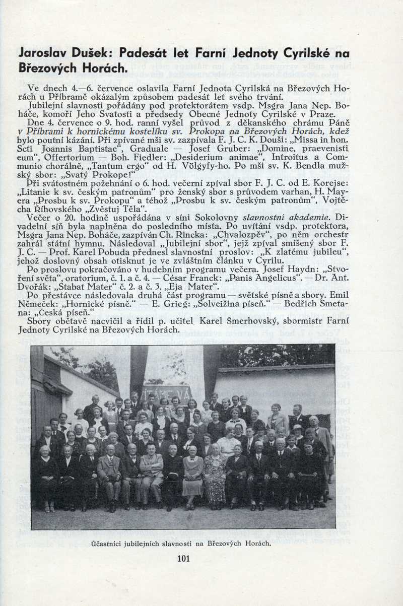 Padesát let Farní Jednoty Cyrilské na Březových Horách Ročník: 1936; strana: 101, Přepis ke stažení ve formátu MS Word [0 kB]