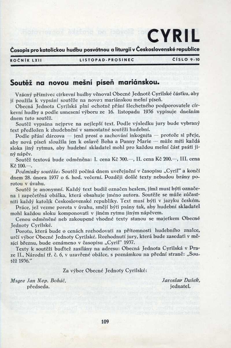 Soutěž na novou mešní píseň mariánskou Ročník: 1936; strana: 109, Přepis ke stažení ve formátu MS Word [0 kB]