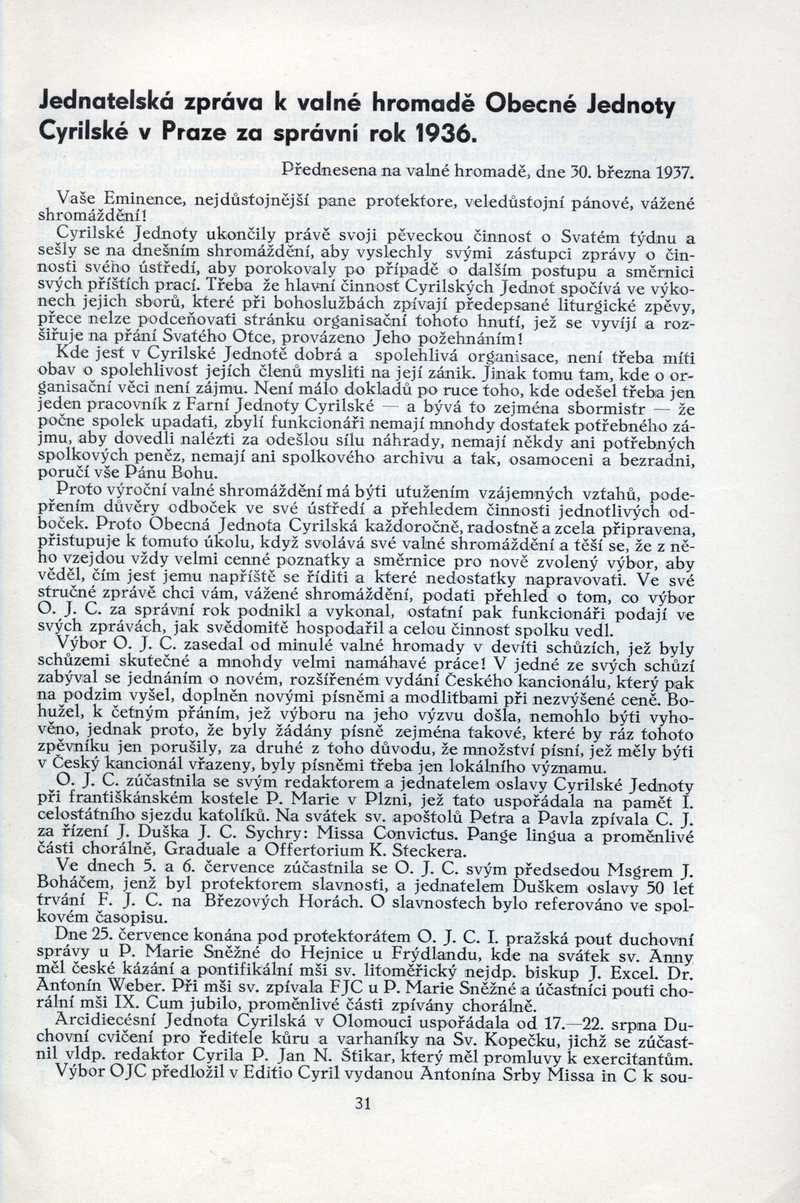 Jednatelská zpráva k valné hromadě Ob. Jednoty Cyrilské za správní rok 1936 Ročník: 1937; strana: 31, Přepis ke stažení ve formátu MS Word [0 kB]