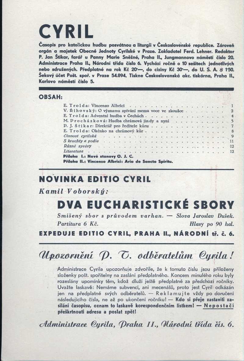 Upozornění P. T. odběratelům Cyrila! Ročník: 1938; strana: 0, příloha: 2 Přepis ke stažení ve formátu MS Word [0 kB]